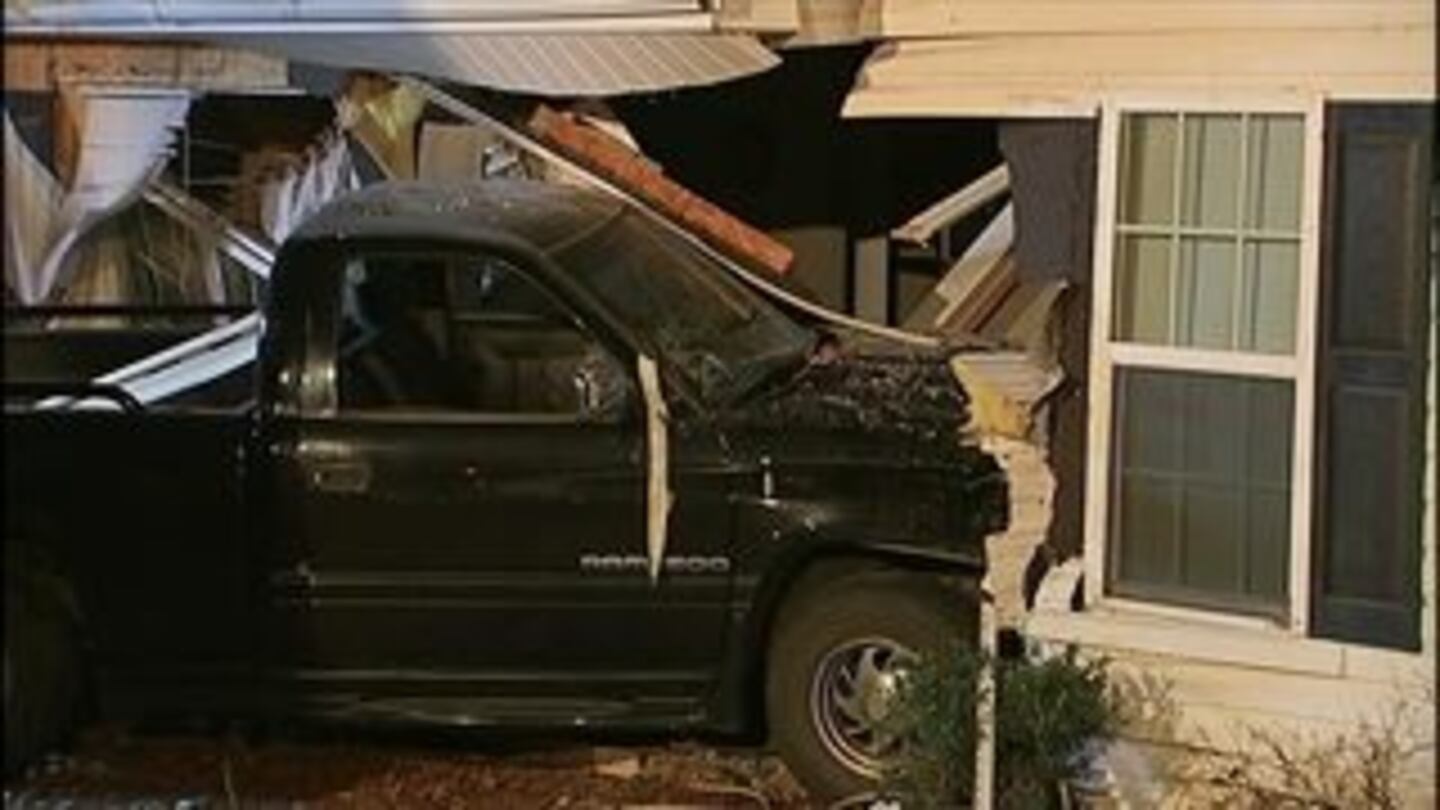 A short time later the truck crashed into a home on Key Street, slamming through the front door and taking out the side windows.