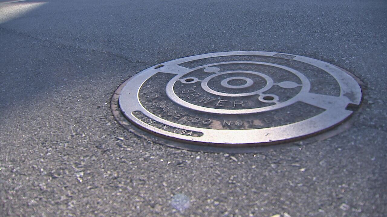 The city says a customer reported the overflow on Ridgewood Drive around 8:15 a.m. Crew found the heavy cast-iron cover missing and debris blocking the line.