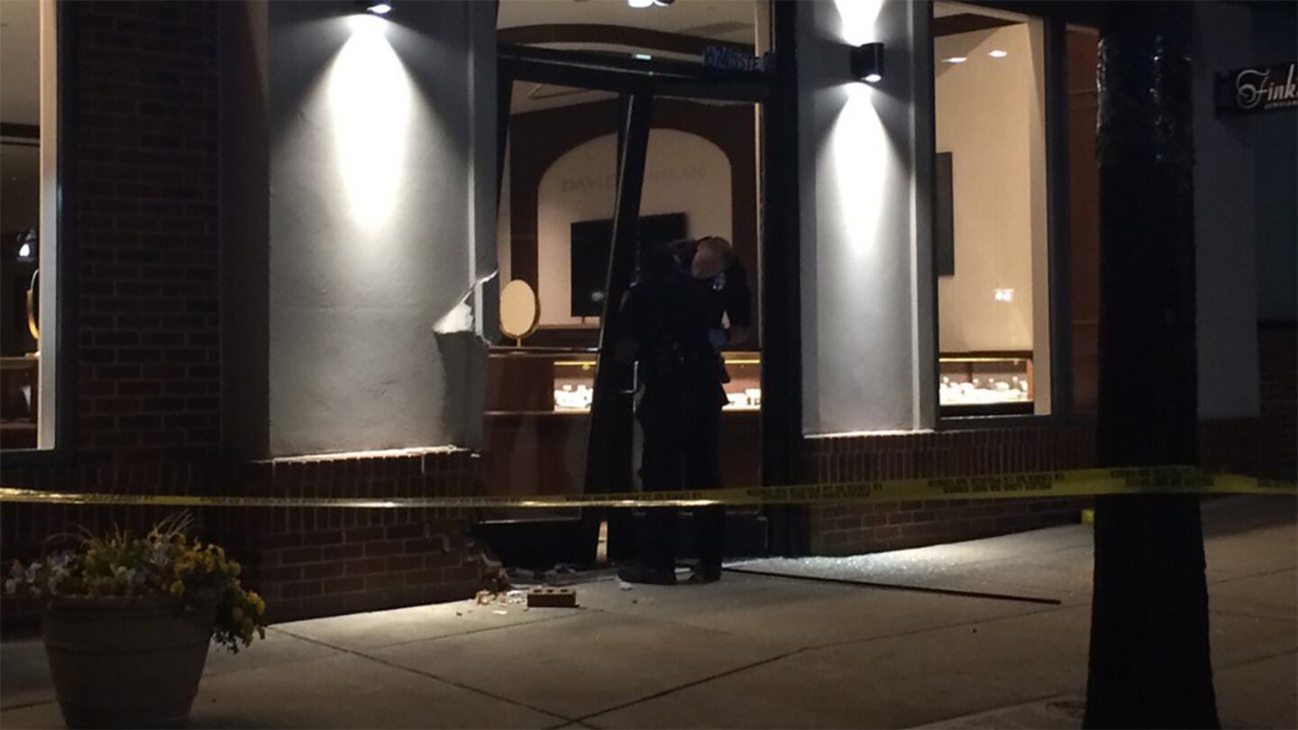 HUNTERSVILLE, N.C. — Huntersville police were trying to figure out who used a vehicle to crash into a jewelry store in Birkdale Village early Tuesday morning.