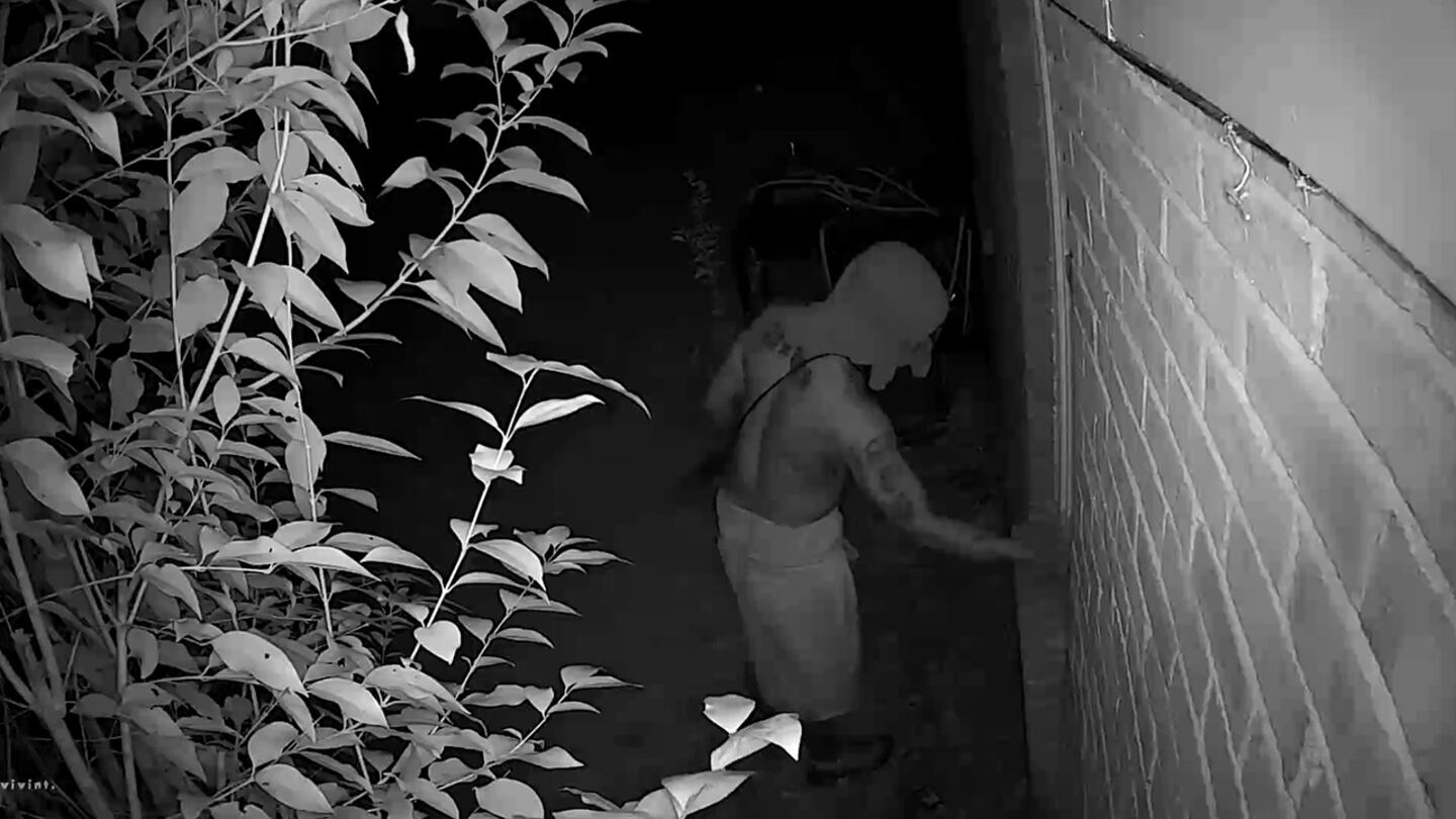 She said the suspect walked to the backyard, looked into a bedroom and tried to break in several times.