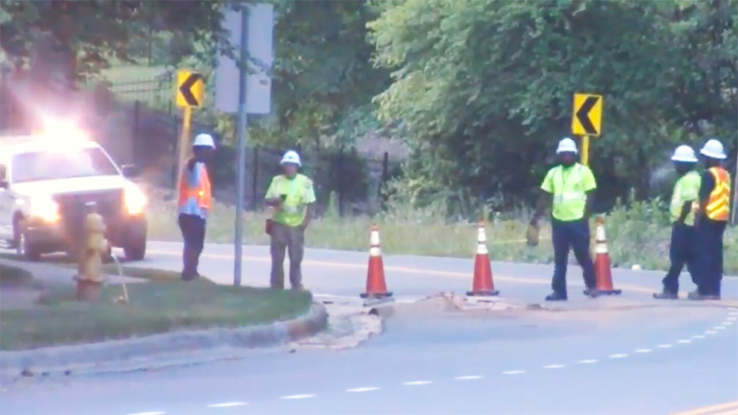 Officials with Charlotte Water expected the road to be closed until at least 5 p.m. At 3:40 p.m., Charlotte Water tweeted it will be another eight hours before repairs are complete.