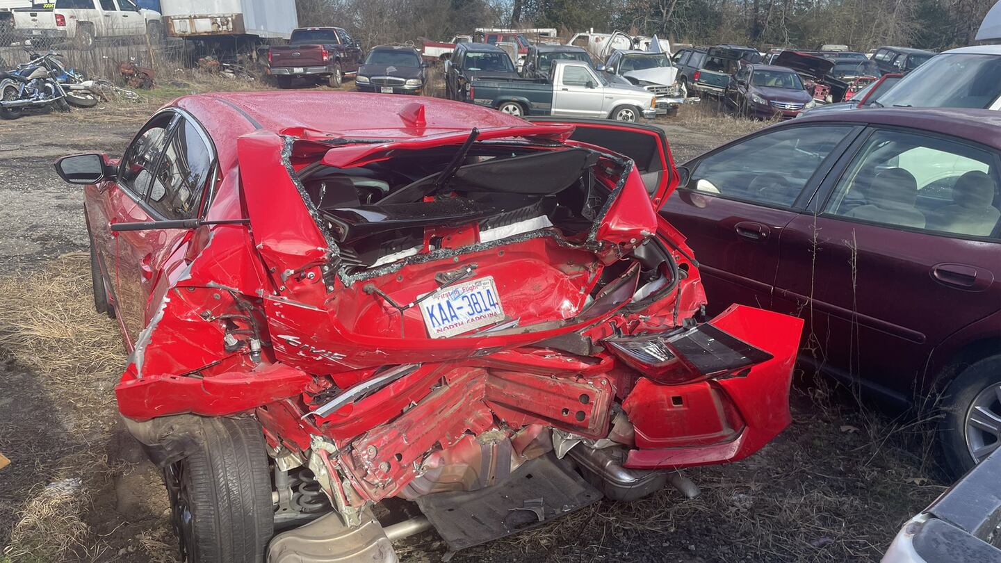 Ashton McClure showed Faherty the back of her car, which was completely destroyed after she was hit from behind Saturday.