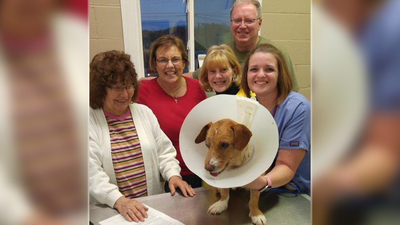 A Better Life Animal Rescue President Gwen Hood says the wounded dog named Brownie was found lying in a ditch during a snowstorm last week. News outlets report Brownie's owner, Edith Pritchard, was found and the Jack Russell Terrier mix was taken to a veterinarian.