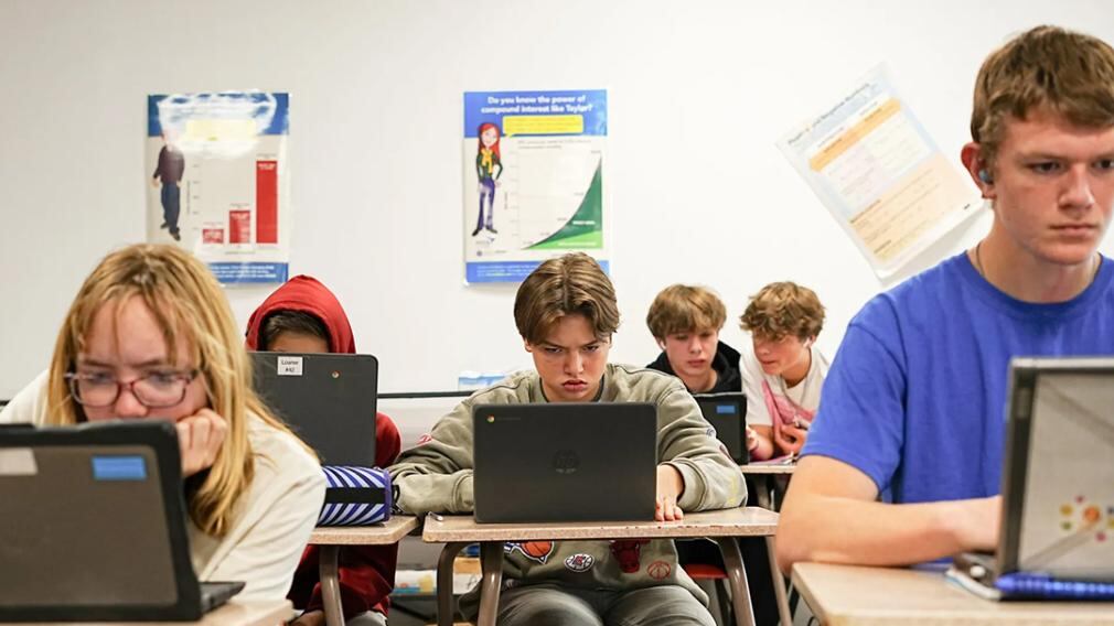 "Eighth grade, they're just in full-on puberty, hormones," said Zach Loy, another math teacher at the high school, an hour's drive from Minneapolis. "Are they capable of sitting down and focusing on one thing for two, three minutes at a time without getting distracted? I see that as being the hardest barrier."