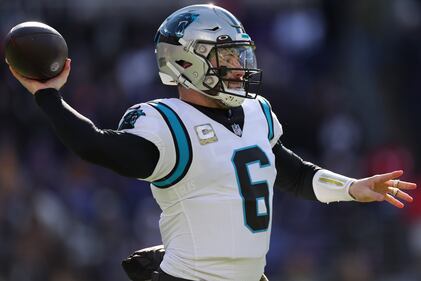 Carolina Panthers v Baltimore Ravens BALTIMORE, MARYLAND - NOVEMBER 20: Baker Mayfield #6 of the Carolina Panthers passes in the third quarter of a game against the Baltimore Ravens at M&T Bank Stadium on November 20, 2022 in Baltimore, Maryland. (Photo by Rob Carr/Getty Images) (Rob Carr/Getty Images)