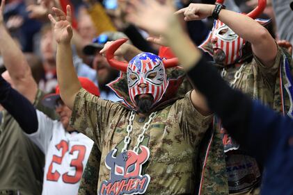 Washington Commanders v Houston Texans HOUSTON, TEXAS - NOVEMBER 20: Houston Texans fans cheer in the first half of a game against the Carolina Panthers at NRG Stadium on November 20, 2022 in Houston, Texas. (Photo by Carmen Mandato/Getty Images) (Carmen Mandato/Getty Images)