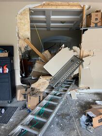 PHOTOS: Car drives completely through Huntersville home, displacing owner