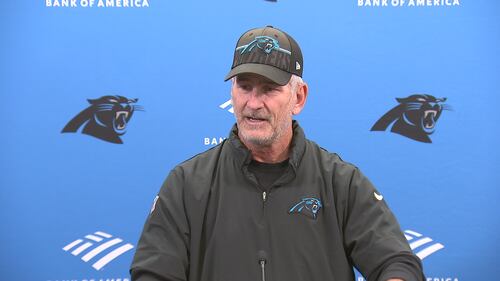 Frank Reich speaks at weekly team news conference on Nov. 20, 2023 Panthers coach Frank Reich said he's not fazed by rumors swirling around his future