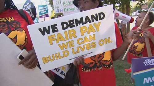 PHOTOS: Charlotte Airport workers strike for better pay and conditions