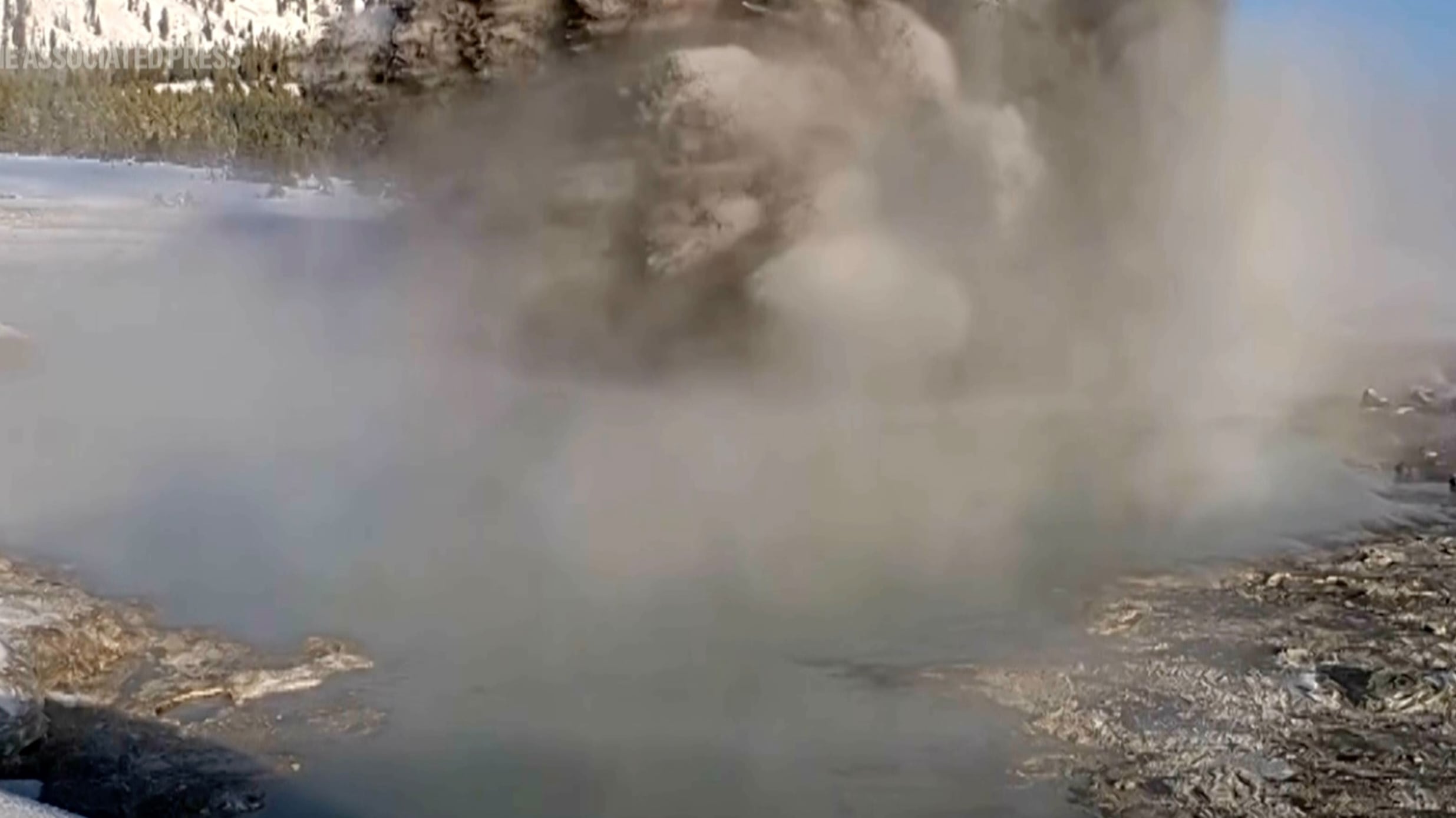 Video shared by the USGS on social media shows mud spraying up and out from the pool just before 9:23 a.m. in Biscuit Basin about midway between park favorites Old Faithful and Grand Prismatic.