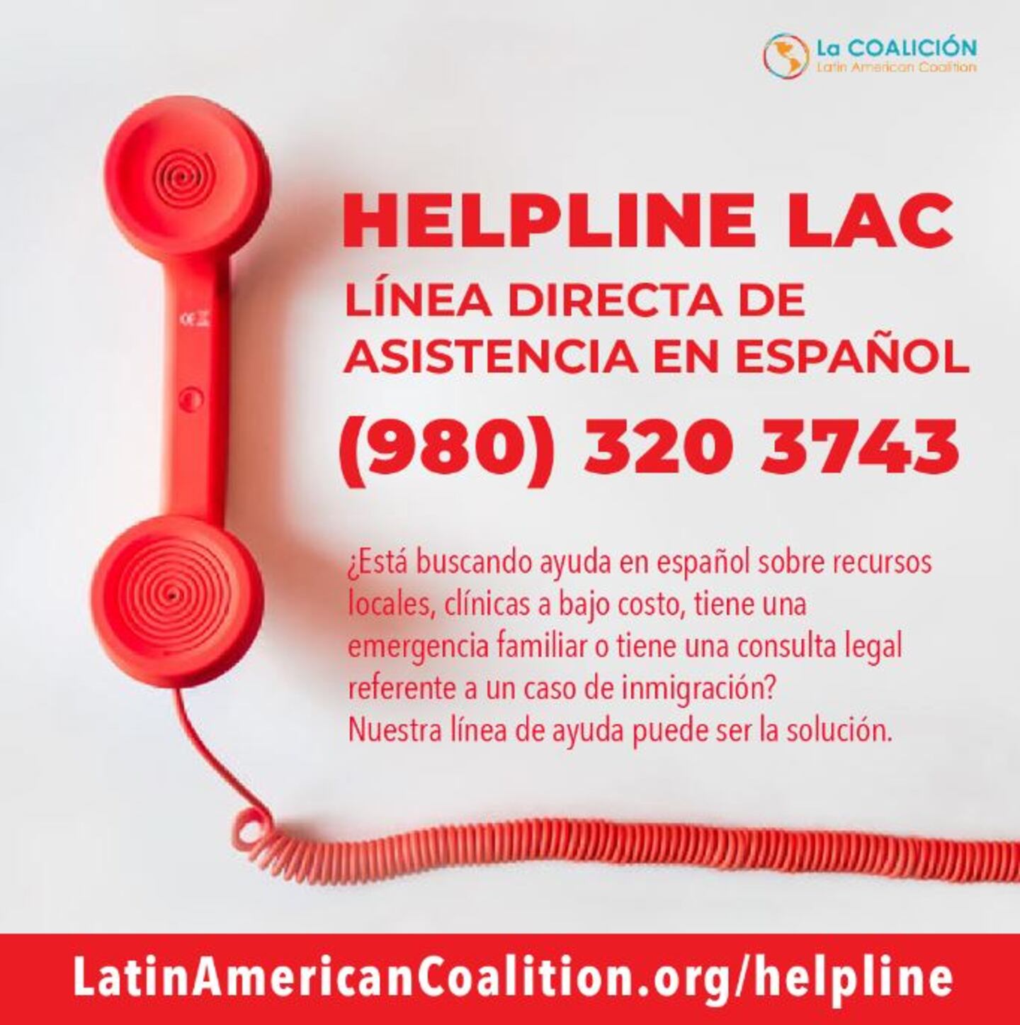 Con motivo de la crisis por el COVID-19 que atraviesa la comunidad latina en Charlotte, la Coalición Latinoamericana ha habilitado una línea telefónica de asistencia en español para familias migrantes afectadas.