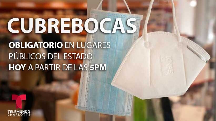 CAROLINA DEL NORTE — El uso obligatorio de cubrebocas en el estado de Carolina del Norte entrará en vigencia a partir de las 5 p.m. el viernes.