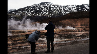REYKJAVIK, ICELAND - APRIL 07: Tourists visit a geyser Ioutside of Reykjavik on April 7, 2016 in Reykjavik, Iceland. Tourism is one of Iceland's most important sectors with thousands visiting every year to indulge in nature and to see the Northern Lights. (Photo by Spencer Platt/Getty Images)