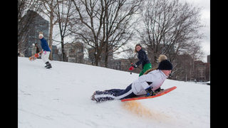 BOSTON, MA - FEBRUARY 13: A girl sleds on Boston Common following a winter storm February 13, 2017 in Gloucester, Massachusetts. (Photo by Scott Eisen/Getty Images)