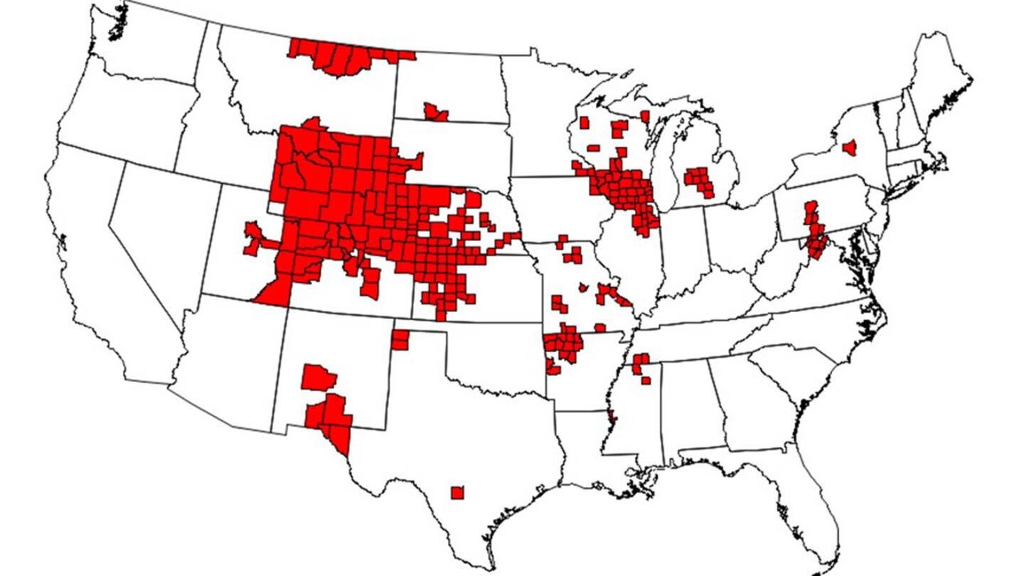 As of January 2019, there were 251 counties in 24 states with reported CWD in free-ranging cervids. This map is based on the best-available information from multiple sources, including state wildlife agencies and the United States Geological Survey. Centers for Disease Control and Prevention