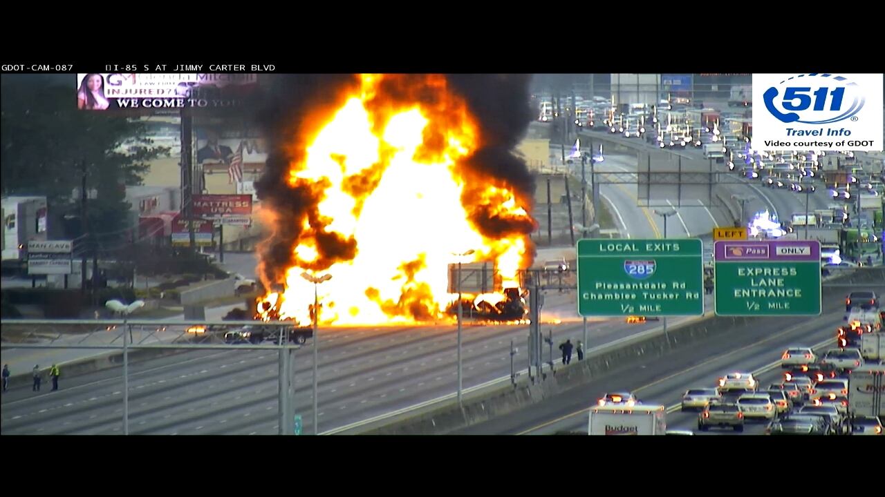Original report: According to Gwinnett County police, northbound traffic was closed on Interstate 85 near Jimmy Carter Boulevard, WSB-TV reported.