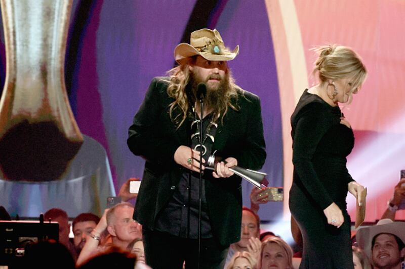 ACM Awards FRISCO, TEXAS - MAY 11: Chris Stapleton accepts the Entertainer of the Year award onstage during the 58th Academy Of Country Music Awards at The Ford Center at The Star on May 11, 2023 in Frisco, Texas. (Photo by Theo Wargo/Getty Images) (Theo Wargo/Getty Images)