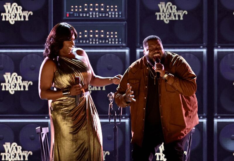 ACM Awards FRISCO, TEXAS - MAY 11: (L-R) Tanya Trotter and Michael Trotter Jr. of The War and Treaty perform onstage during the 58th Academy Of Country Music Awards at The Ford Center at The Star on May 11, 2023 in Frisco, Texas. (Photo by Theo Wargo/Getty Images) (Theo Wargo/Getty Images)
