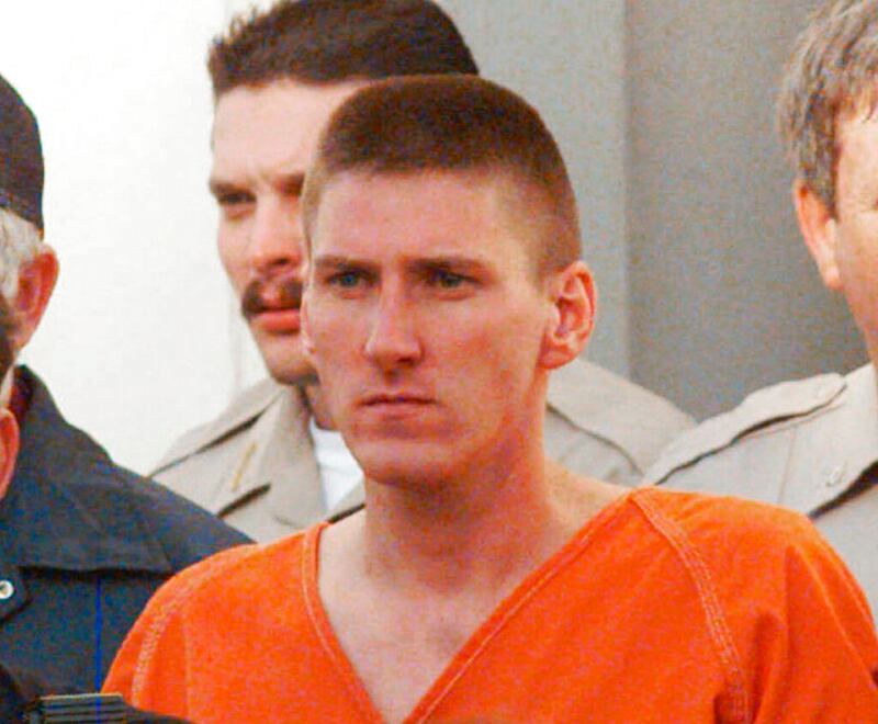 Oklahoma City bombing Terry Nichols, wearing a bullet-proof vest, is escorted by U.S. marshals as he leaves the federal courthouse in Wichita, Kansas, April 26, 1995. U.S. District Judge Monti Belot granted an order to transfer Nichols to Oklahoma City as a material witness in the bombing case, but then stayed the order to allow the defense attorneys to appeal. (AP Photo/Steve Rasmussen) (Steve Rasmussen/AP)