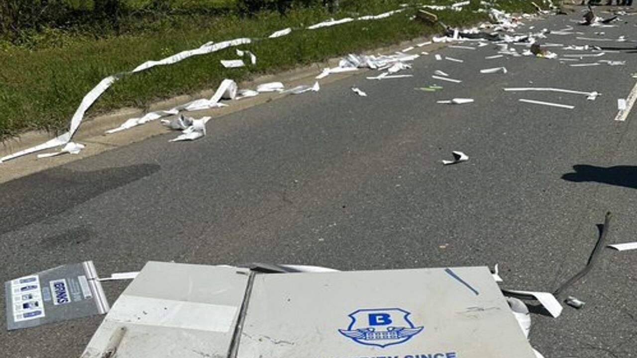 MIDLAND, N.C. — A Brinks armored truck carrying coins crashed on a North Carolina highway on Wednesday, spilling currency on the road, authorities said.