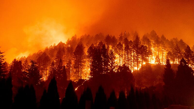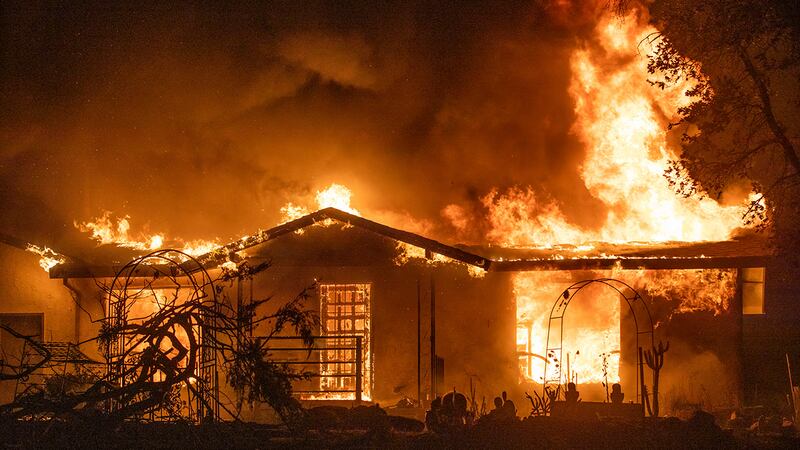 New wildfires scorch California Flames from the Glass Fire consume Chateau Boswell Winery in St. Helena, Calif., on Sunday, Sept. 27, 2020. (Noah Berger/AP)