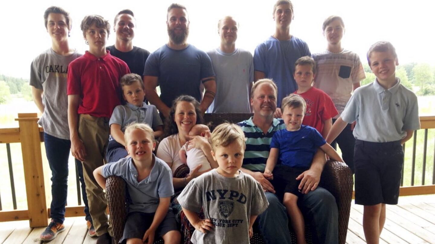 The Schwandts, both 45, began dating as high school freshmen and were married in 1993, the Free Press reported. They attended Ferris State University and had three sons before they graduated -- Tyler, Zach and Drew. Those boys were followed by Brandon, Tommy, Vinny, Calvan, Gabe, Wesley, Charlie, Luke, Tucker, Francisco and Finley, the newspaper reported.