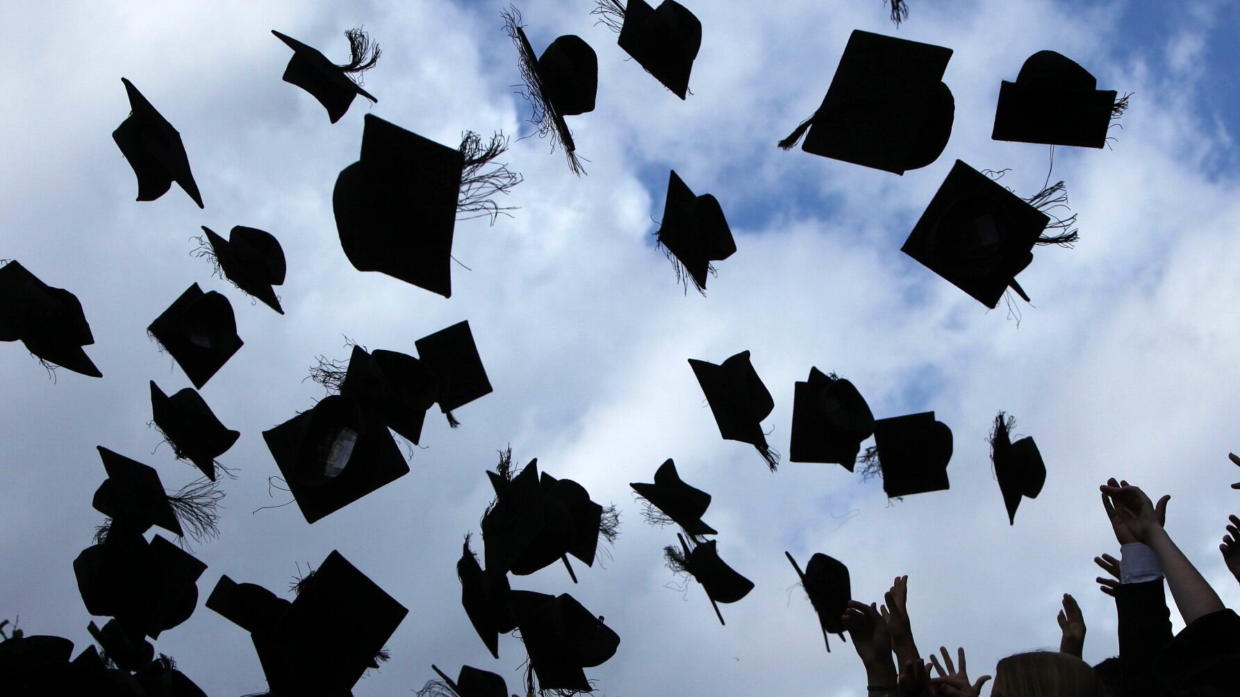 Graduation Class of 2009 students throw their mortarboards in the air as they graduate from the University of Birmingham in Birmingham, England. (Christopher Furlong/Getty Images)
