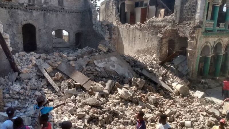 Haiti earthquake The Sacred Heart church in Les Cayes suffered major damage after Saturday's earthquake. (Delot Jean/Associated Press )