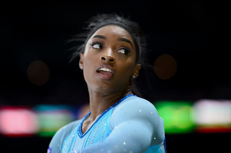 2023 Artistic Gymnastics World Championships ANTWERP, BELGIUM - SEPTEMBER 28: Simone Biles of United States looks on during the 2023 FIG Artistic Gymnastics World Championships Training Session at the Antwerp Sportpaleis on September 28, 2023 in Antwerp, Belgium. (Photo by Matthias Hangst/Getty Images) (Matthias Hangst/Getty Images)
