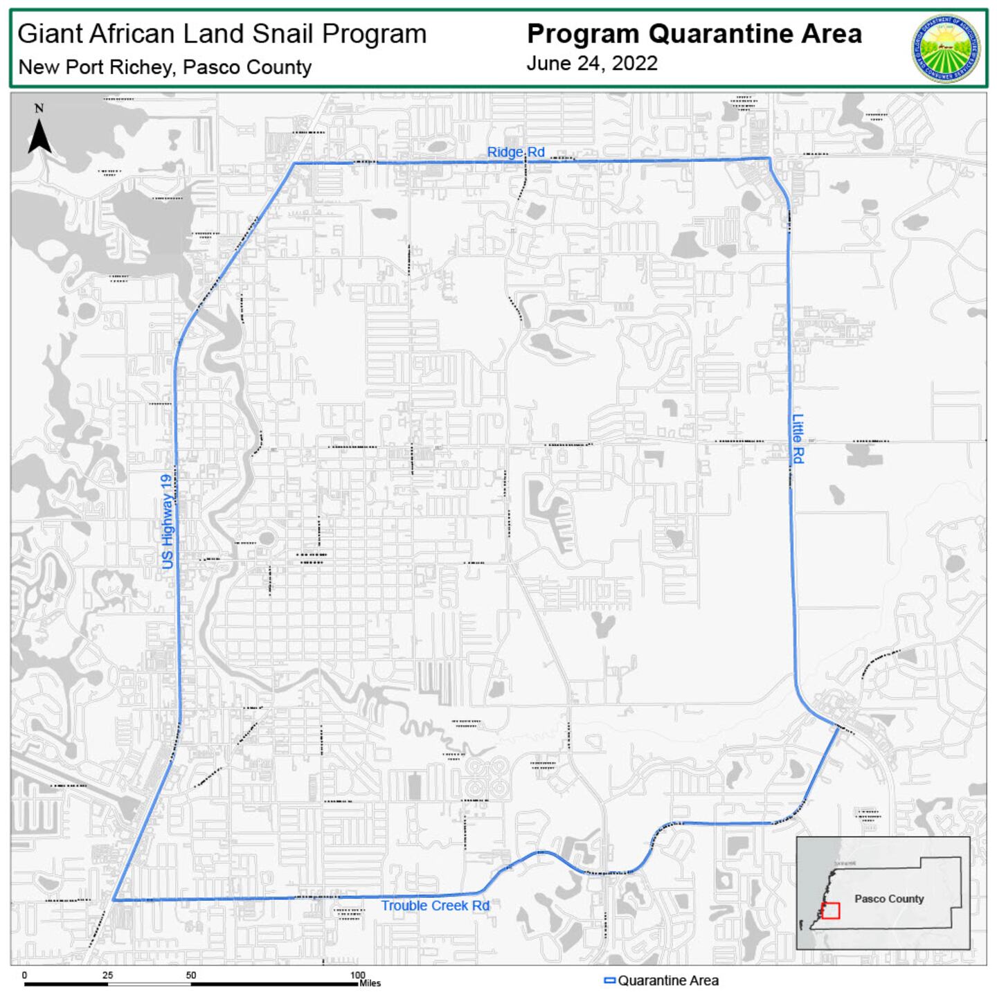 A map from the agency shows the quarantine area, which is in the southwestern corner of Pasco County.