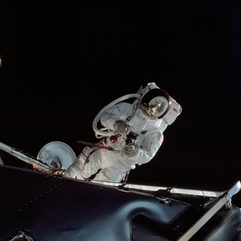 Photos: Remembering NASA's Apollo 9 mission Astronaut Russell L. Schweickart, lunar module pilot, operates a 70mm Hasselblad camera during his extravehicular activity on the fourth day of the Apollo 9 earth-orbital mission in March 1969. (National Aeronautics and Space Administration)