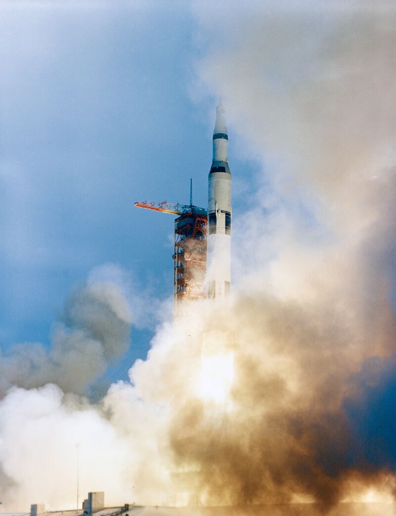 Photos: Remembering NASA's Apollo 9 mission The Apollo 9 (Spacecraft 104/Lunar Module 3/Saturn 504) space vehicle is launched from Pad A, Launch Complex 39, Kennedy Space Center (KSC) at 11 a.m. EST March 3, 1969. Aboard the spacecraft are astronauts James A. McDivitt, commander; David R. Scott, command module pilot; and Russell L. Schweickart, lunar module pilot. (National Aeronautics and Space Administration)