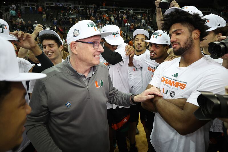 Jordan Miller and the Canes are all smiles as they advance to their first Final Four in school history! #MarchMadness @CanesHoops pic.twitter.com/5mqknCf6TS