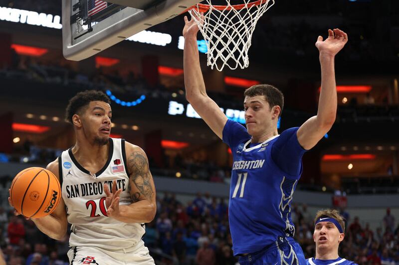 The Aztecs had never reached the Elite Eight. They got to the Final Four by beating No. 12 Charleston, No. 13 Furman and No. 1 Alabama before edging the Bluejays to win the South Regional, The Athletic reported.