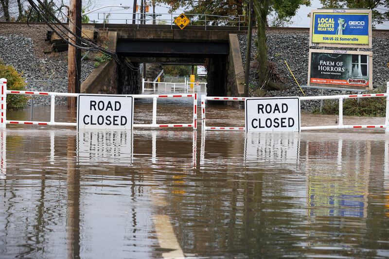 Photos: Nor'easter brings heavy rain, strong winds to New England A view of a residential area in Middlesex County as floodwaters cover the streets in New Jersey, United States, on October 26, 2021. (Tayfun Coskun/Anadolu Agency via Getty Images)