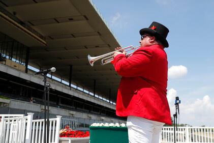 152nd Belmont Stakes ELMONT, NEW YORK - JUNE 20: Bugle player Sam Grossman plays before a race during the 152nd running of the Belmont Stakes at Belmont Park on June 20, 2020 in Elmont, New York. (Photo by Al Bello/Getty Images) (Al Bello/Getty Images)
