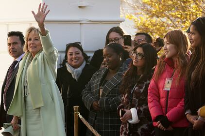 Photos: 2022 White House Christmas tree arrives in Washington, D.C. U.S. first lady Jill Biden waves after she received the official 2022 White House Christmas Tree at the White House on November 21, 2022, in Washington, DC. This year’s tree is an 18.5-foot Concolor Fir, presented by the Shealer Family of Evergreen Acres Christmas Tree Farm in Auburn, Pennsylvania, the 2022 Grand Champion Grower in the annual National Christmas Tree Association’s annual contest. (Alex Wong/Getty Images)