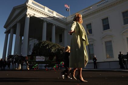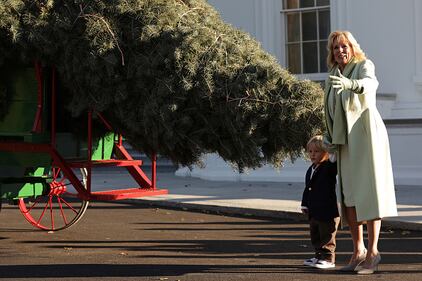 Photos: 2022 White House Christmas tree arrives in Washington, D.C. U.S. first lady Jill Biden and grandson Beau Biden leave after they received the official 2022 White House Christmas Tree at the White House on November 21, 2022, in Washington, DC. This year’s tree is an 18.5-foot Concolor Fir, presented by the Shealer Family of Evergreen Acres Christmas Tree Farm in Auburn, Pennsylvania, the 2022 Grand Champion Grower in the annual National Christmas Tree Association’s annual contest. (Alex Wong/Getty Images)