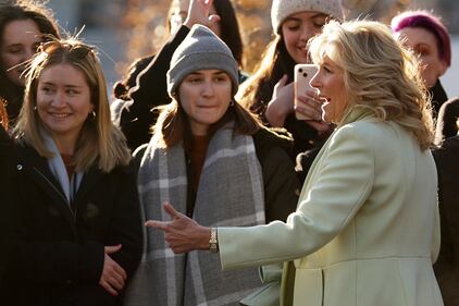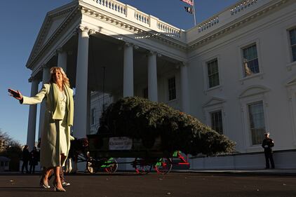 Photos: 2022 White House Christmas tree arrives in Washington, D.C. U.S. first lady Jill Biden talks to White House staff after she received the official 2022 White House Christmas Tree at the White House on November 21, 2022, in Washington, DC. This year’s tree is an 18.5-foot Concolor Fir, presented by the Shealer Family of Evergreen Acres Christmas Tree Farm in Auburn, Pennsylvania, the 2022 Grand Champion Grower in the annual National Christmas Tree Association’s annual contest. (Alex Wong/Getty Images)