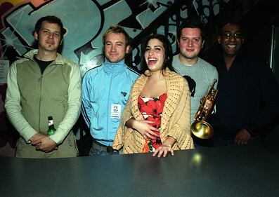 Amy Winehouse Amy Winehouse, portrait with band, London, United Kingdom, 2003. (Photo by Ian Dickson/Redferns) (Ian Dickson/Redferns via Getty Images)