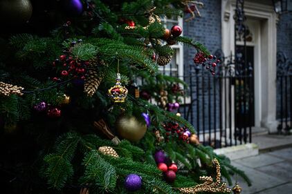 Photos: British PM Rishi Sunak lights Downing Street Christmas tree A novelty bauble is seen on the Christmas tree outside 10 Downing St., ahead of the switching on of the lights on November 28, 2022, in London. (Leon Neal/Getty Images)