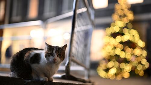 Photos: British PM Rishi Sunak lights Downing Street Christmas tree Larry the cat sits in front of the Downing Street Christmas tree on November 28, 2022, in London. (Leon Neal/Getty Images)