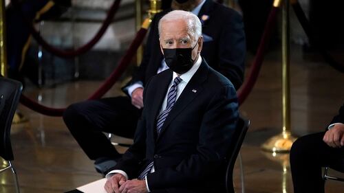 Capitol Police Officer William 'Billy' Evans lies in honor at U.S. Capitol President Joe Biden attends a program for U.S. Capitol Police officer William "Billy" Evans, as he lies in honor during a ceremony at the Capitol in Washington, Tuesday, April 13, 2021. (Amr Alfiky/The New York Times via AP, Pool)