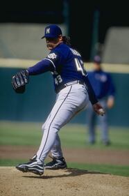 Through the years 16 May 1998: Pitcher Doug Jones of the Milwaukee Brewers in action during a game against the Colorado Rockies at Coors Field in Denver, Colorado. The Brewers won the game, 7-5. Mandatory Credit: Brian Bahr /Allsport (Brian Bahr/Getty Images)