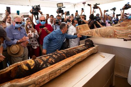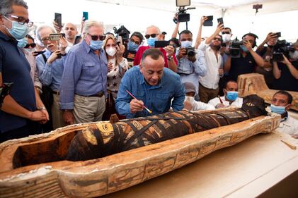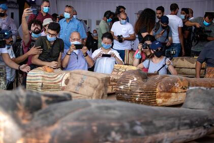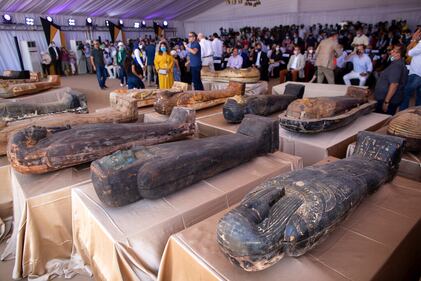 Photos: Egypt displays 59 ancient coffins recently discovered near pyramids