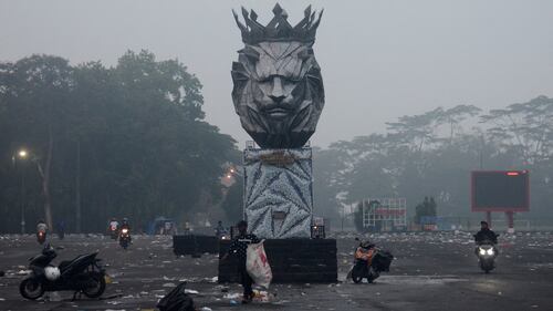 Indonesia stadium stampede Motorists commute outside Kanjuruhan stadium the morning after a football match between Arema FC and Persebaya Surabaya in Malang, East Java on October 2, 2022. (PUTRI/AFP via Getty Images)