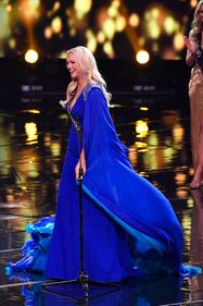 Miss America Miss North Dakota Reyna Bergstrom in the Miss America competition at the Mohegan Sun, Thursday, Dec. 16, 2021, in Uncasville, Conn. (AP Photo/Jessica Hill) (Jessica Hill/AP)