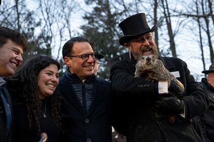 Groundhog Day PUNXSUTAWNEY, PA - FEBRUARY 02: Pennsylvania Governor Josh Shapiro and his children pose for a portrait with Groundhog handler AJ Derume and Punxsutawney Phil, who saw his shadow, predicting a late spring during the 136th annual Groundhog Day festivities on February 2, 2023 in Punxsutawney, Pennsylvania. Groundhog Day is a popular tradition in the United States and Canada. A crowd of upwards of 5,000 people spent a night of revelry awaiting the sunrise and the groundhog's exit from his winter den. If Punxsutawney Phil sees his shadow he regards it as an omen of six more weeks of bad weather and returns to his den. Early spring arrives if he does not see his shadow, causing Phil to remain above ground.