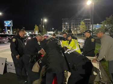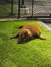 Photos: Seal leaves pond, waddles to police station