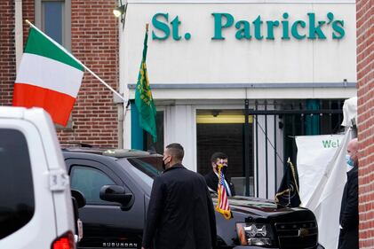 St. Patrick's Day 2021 President Joe Biden's security detail waits for his departure as he attends mass at St. Patrick's Catholic Church in Wilmington, Del., Wednesday, March 17, 2021, on St. Patrick's Day. (AP Photo/Carolyn Kaster) (Carolyn Kaster/AP)